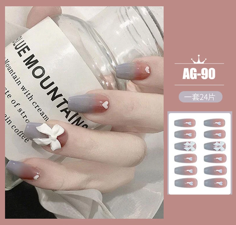 24 шт.кор. накладные ногти гроб носимый дизайн банта искусственные ...