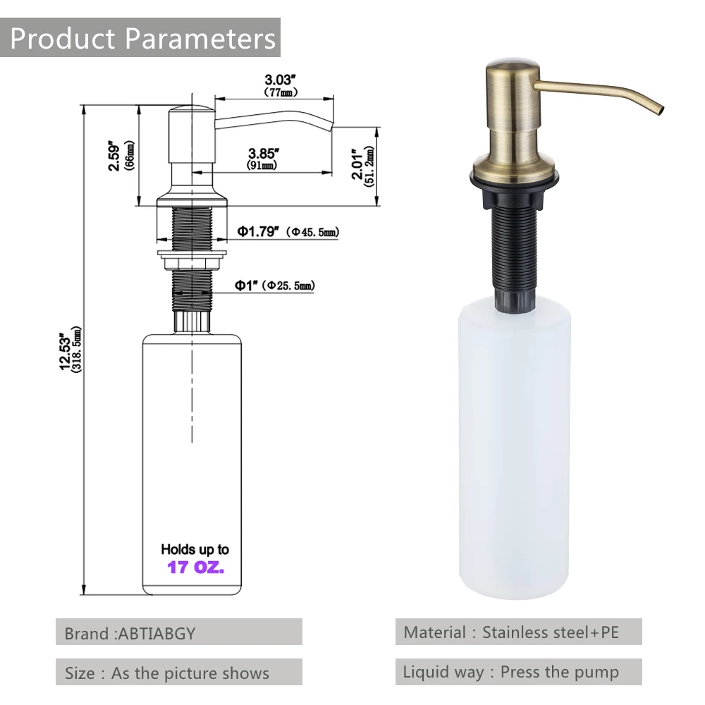 * Простая установка: Большая емкость бутылки (500 мл), можно пополнять жидким мылом-нужно скорее снять бутылку, это займет всего несколько минут, чтобы установить ее. Пополнение сверху больше не ползает под раковину!