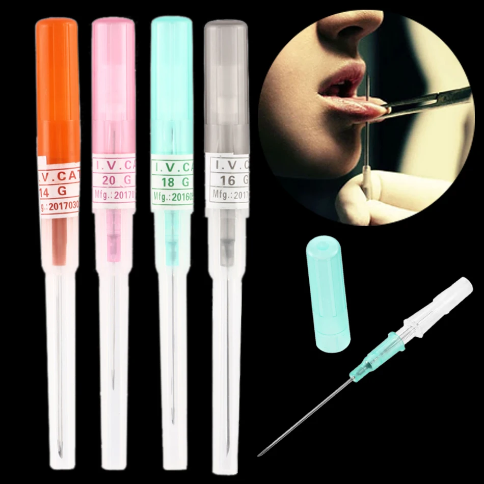 1-5 шт. сталь I.V. Катетер Cannula стерильные иглы для пирсинга 14 г, 16 г, 18 г, 20 г, профессиональный инструмент для ушей, губ, носа