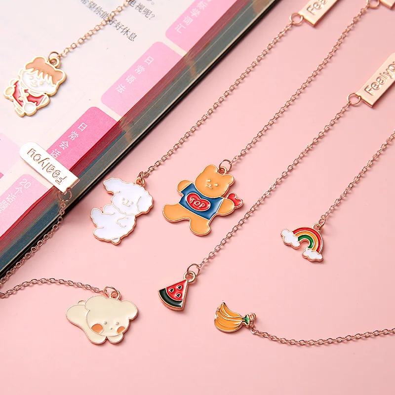 Милый медведь, цветок, металлические закладки для книг, мультяшный декоративный кулон, Студенческая папка, страница, кавайная Закладка, Корея, канцелярские принадлежности