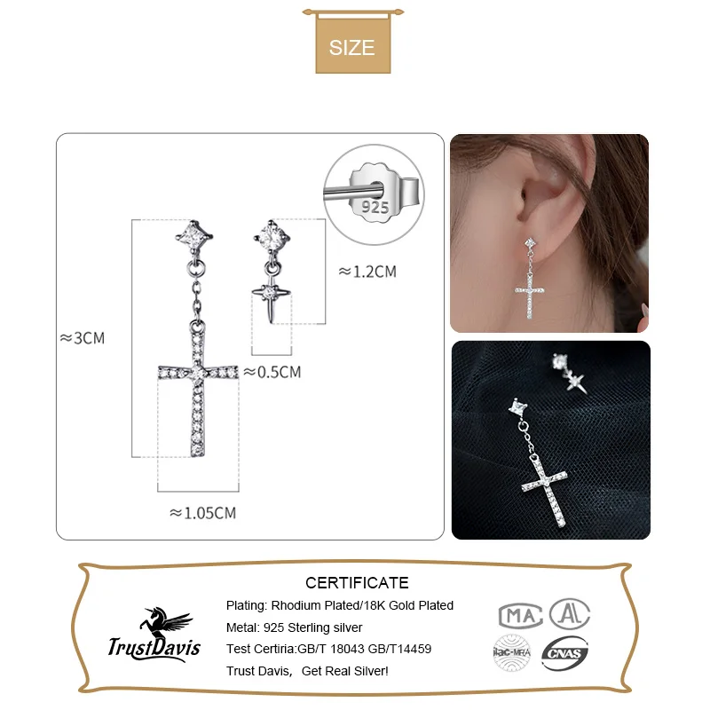 TrustDavis Настоящее серебро 925 пробы модные милые очаровательные серьги-гвоздики с крестом для женщин на свадьбу День матери Изящные Ювелирные изделия DA2797