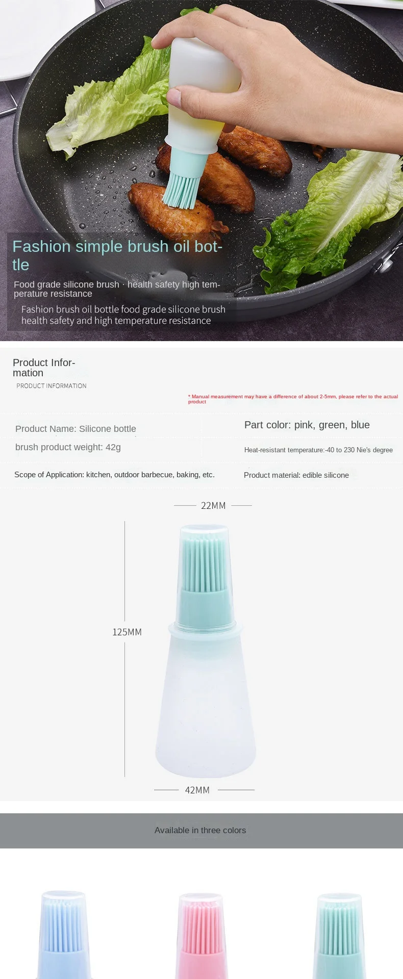 Портативная бутылка для масла с кисточкой, термостойкая кисточка дл...