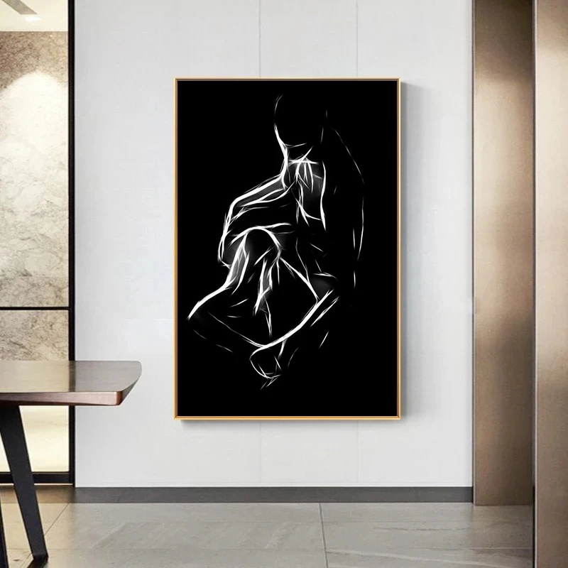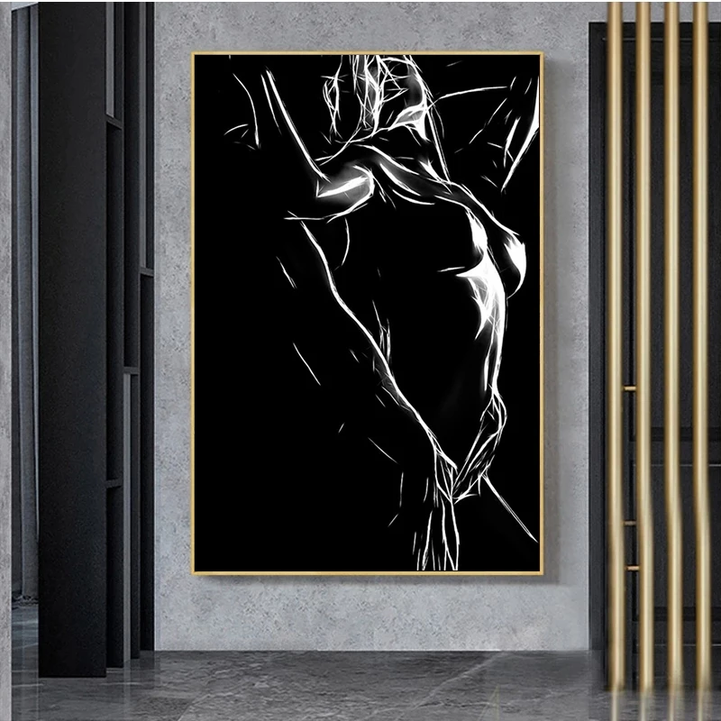 Черный плакат с сексуальной обнаженной женщиной, Абстрактная Картин...