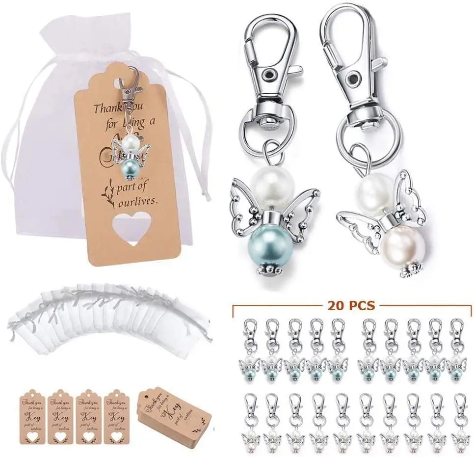 20 шт., дизайнерский брелок Angel, набор, включает в себя брелки Angel, подарочные сумки из органзы и благодарим Вас, бирки для детского душа, свадьбы