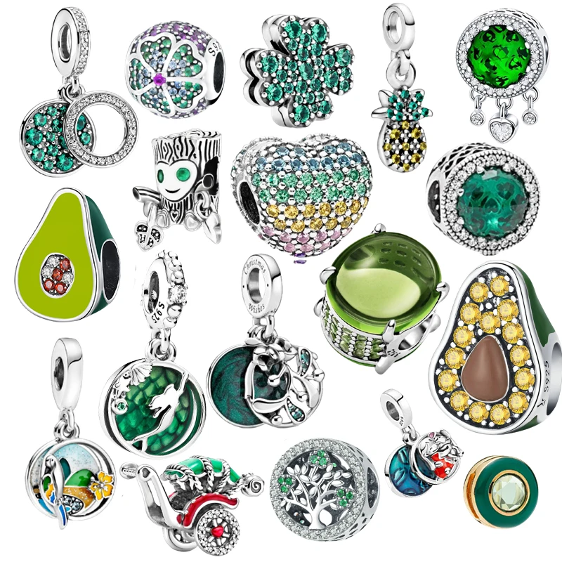 Подвеска для браслета Pandora из серебра 925 пробы, с зелеными бусинами