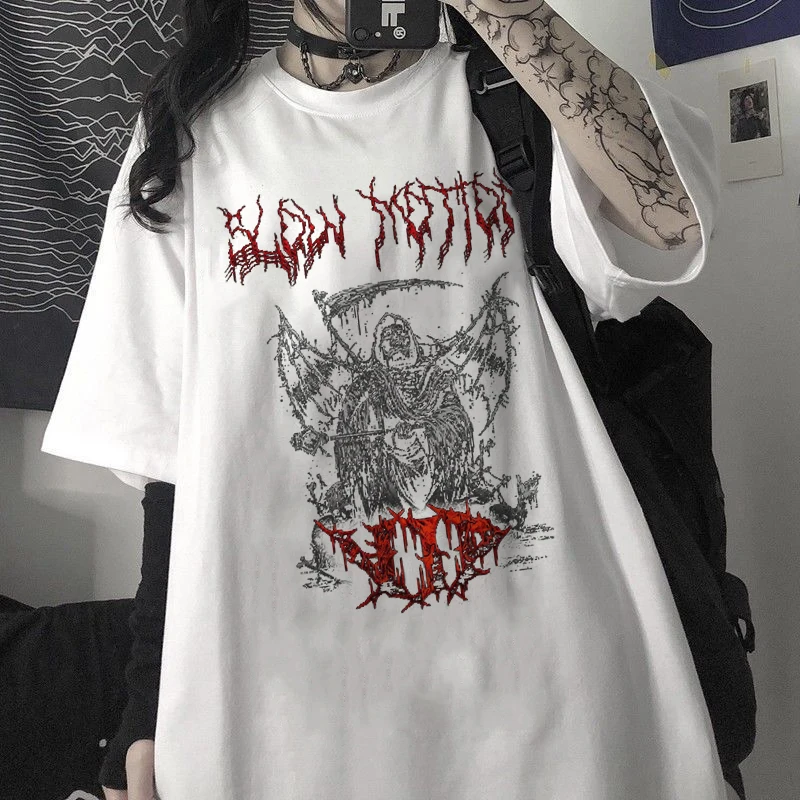 Женская одежда, милая рубашка оверсайз в стиле аниме, винтажная уличная одежда в стиле Харадзюку, топы в стиле панк, гот y2k, модные летние футболки