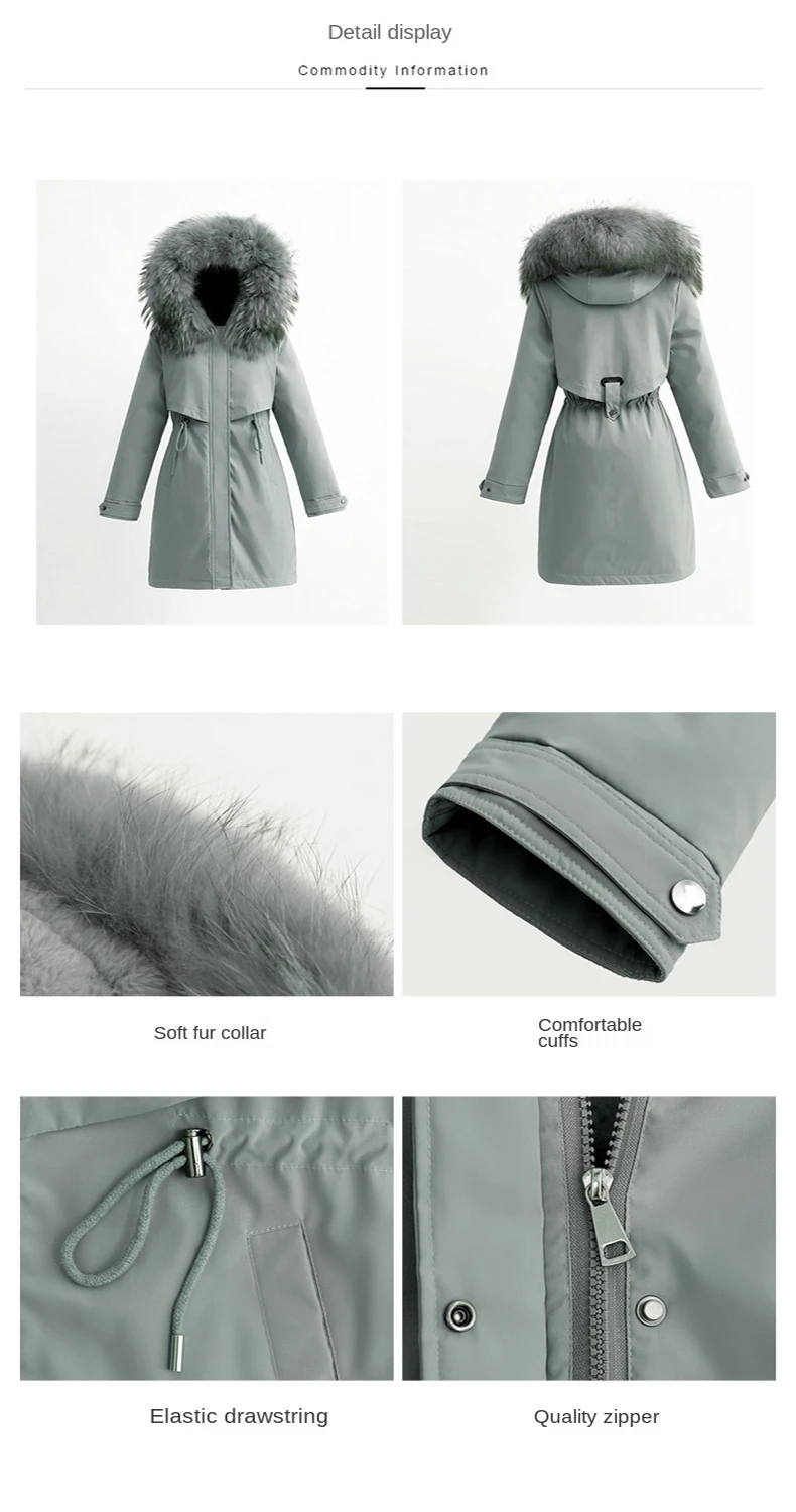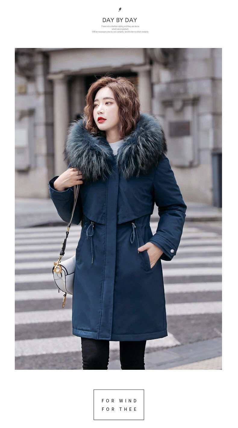 Новинка 2021, толстая длинная парка со съемной меховой подкладкой, ...