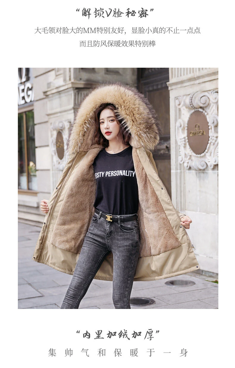 Парка женская зимняя с меховой подкладкой, средней длины, 2020, 6XL