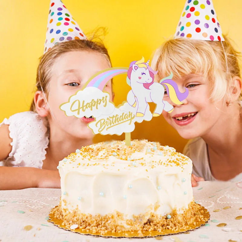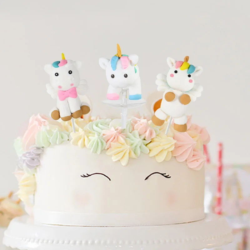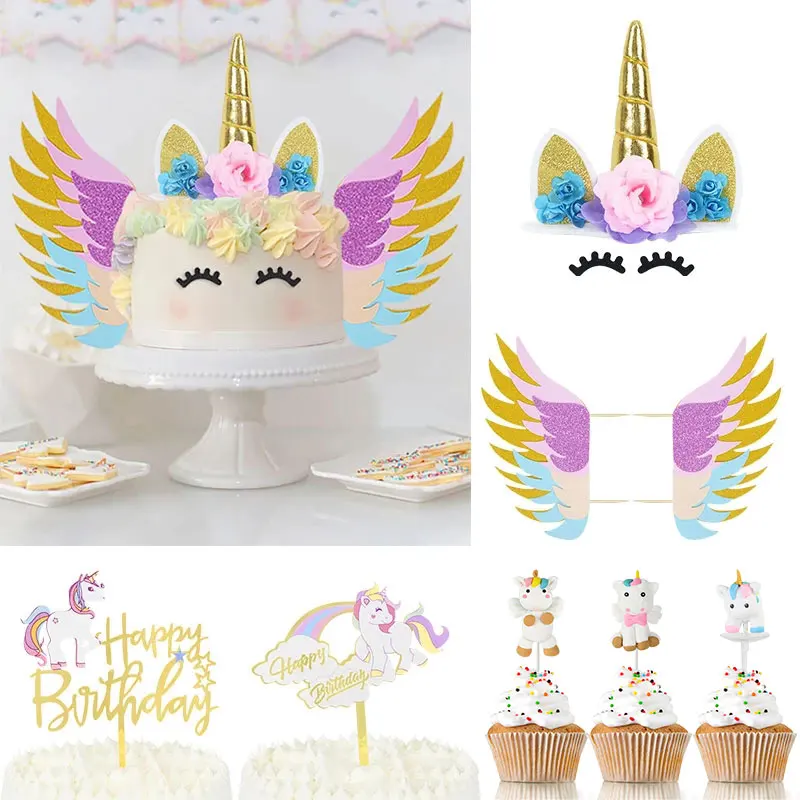Украшение для торта в виде единорога на день рождения, Мультяшные крылья для торта в виде единорога, детский Топпер для кекса на день рождения, товары для свадьбы и вечеринки в виде единорога
