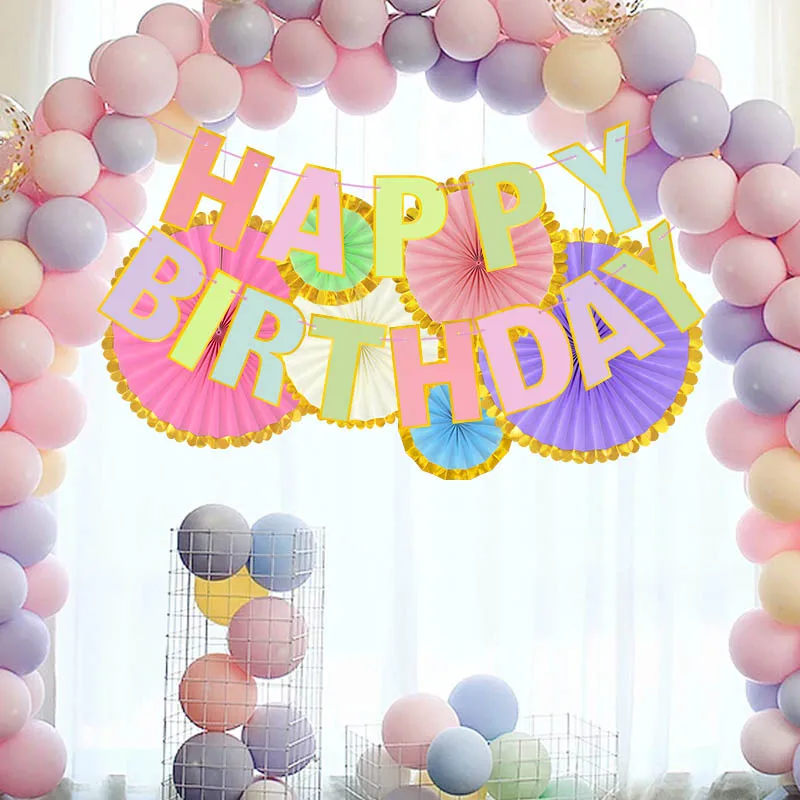 1 Набор «С Днем Рождения» баннер Macaron конфеты овсянки гирлянды для маленьких мальчиков и девочек Baby Shower 1st на день рождения пастельных вечерние украшенияUSD 3,86/Шт/Лот 1