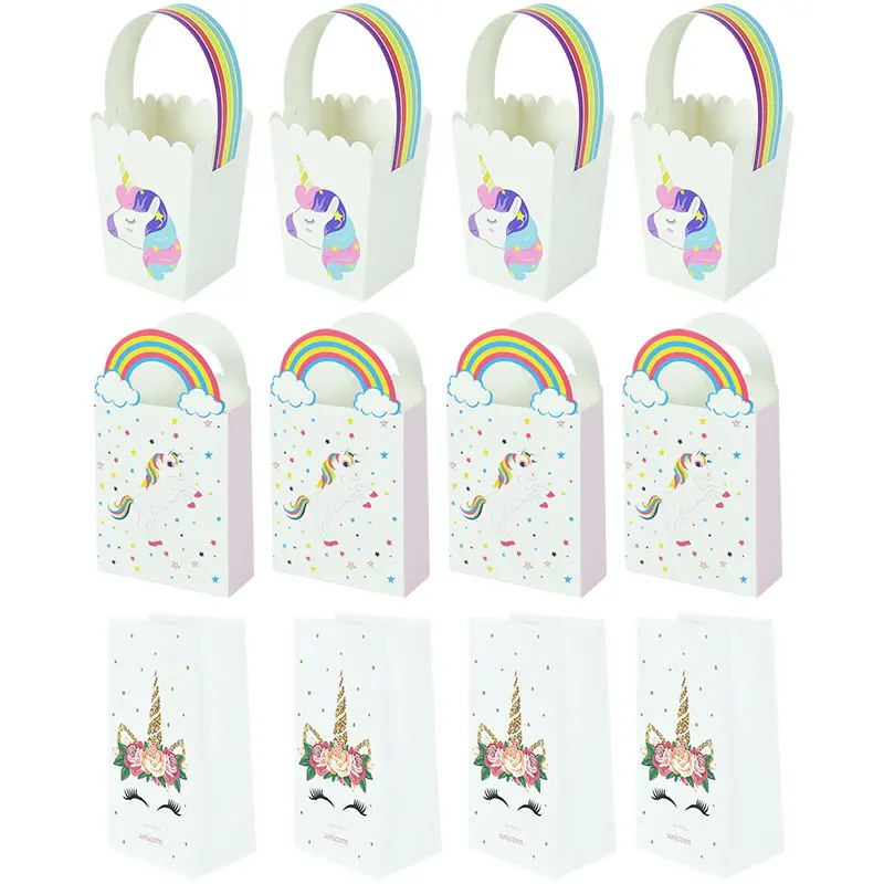 10 шт милый Единорог Бумажный Подарочный мешок попкорн коробка для детского душа 1st Дети День рождения Свадьба любимые Конфеты Шоколад пищевая упаковка коробки4 долл. США/Шт/Лот 10