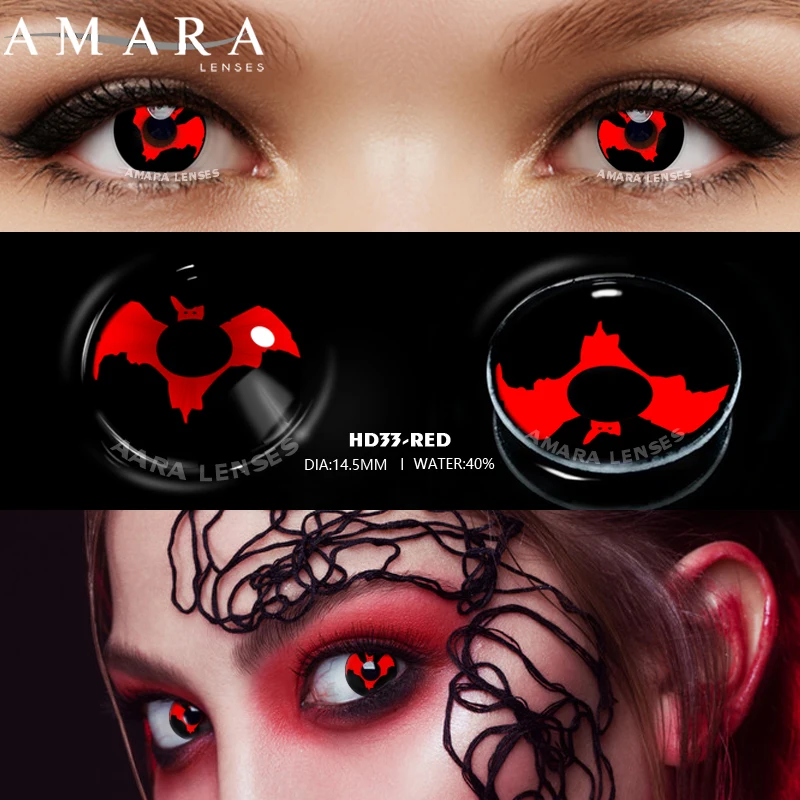 Цветные контактные линзы AMARA для косплея, для макияжа глаз, красн...
