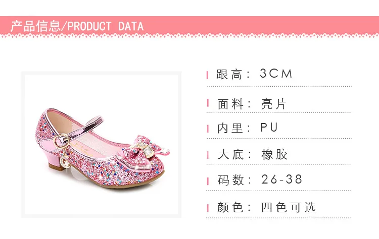 Детская вечерняя обувь принцессы на высоком каблуке для девочек, ос...