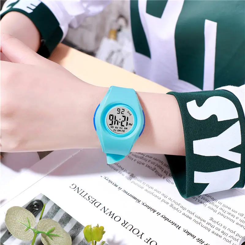 Детские часы 50 м водонепроницаемые спортивные часы для детей на открытом воздухе наручные часы для девочек и мальчиков светодиодные цифровые часы для детей Montre EnfantОсобенности: желеобразный цвет; Яркие светящиеся Детские СтудентыФункция: будильник, день недели, отображение даты, ежечасное время, секундомер, световой дисплей, WR50M водонепроницаемость, 12/24 часовая системаДиаметр циферблата: 39,3 ммТолщина циферблата: 13,1 ммШирина ремешка: 20,22 мм