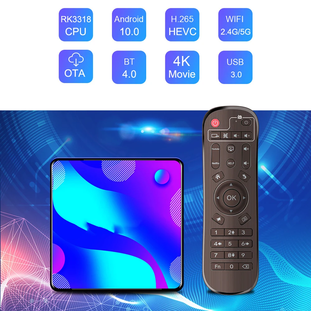 ТВ-приставка Android 2,4, RK3318, 4K, G, 5G, двухдиапазонный, Wi-Fi +, BT4.0, четырехъядерный, 64-разрядный, с ИК-пультом дистанционного управления, европейская вилка, 4 Гб + 64 ГБ