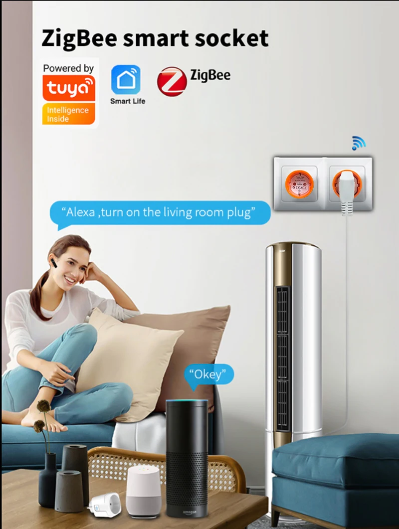 Умная розетка ZigBee идеально совместима с Amazon Alexa, Google Home. Просто дайте голосовую команду вашему домашнему помощнику Alexa или Google для управления устройствами, когда вы находитесь в пути.