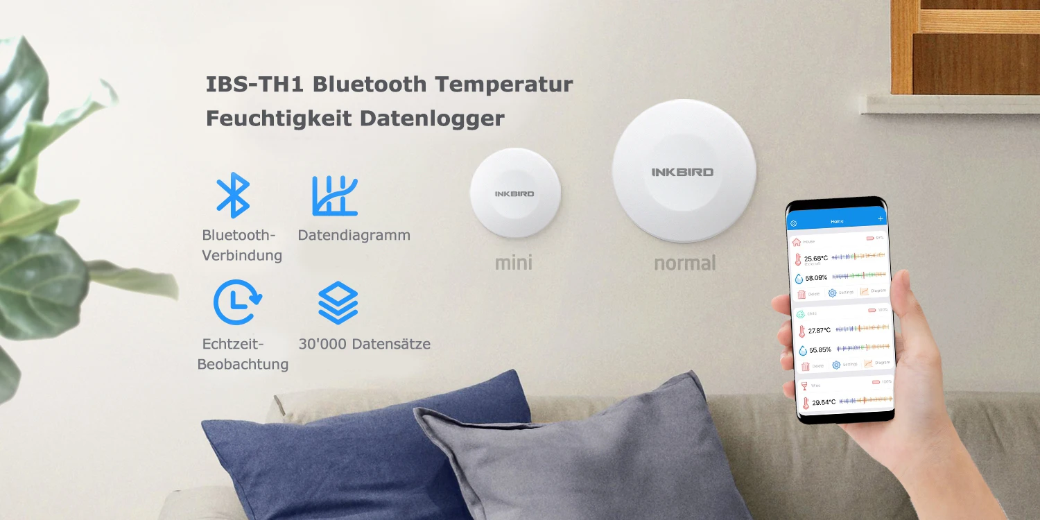 Беспроводная метеостанция INKBIRD IBS-TH1 Plus, устройство для измерения температуры и влажности, с умным датчиком, подходит для пивоварения, сауны, домашних животных