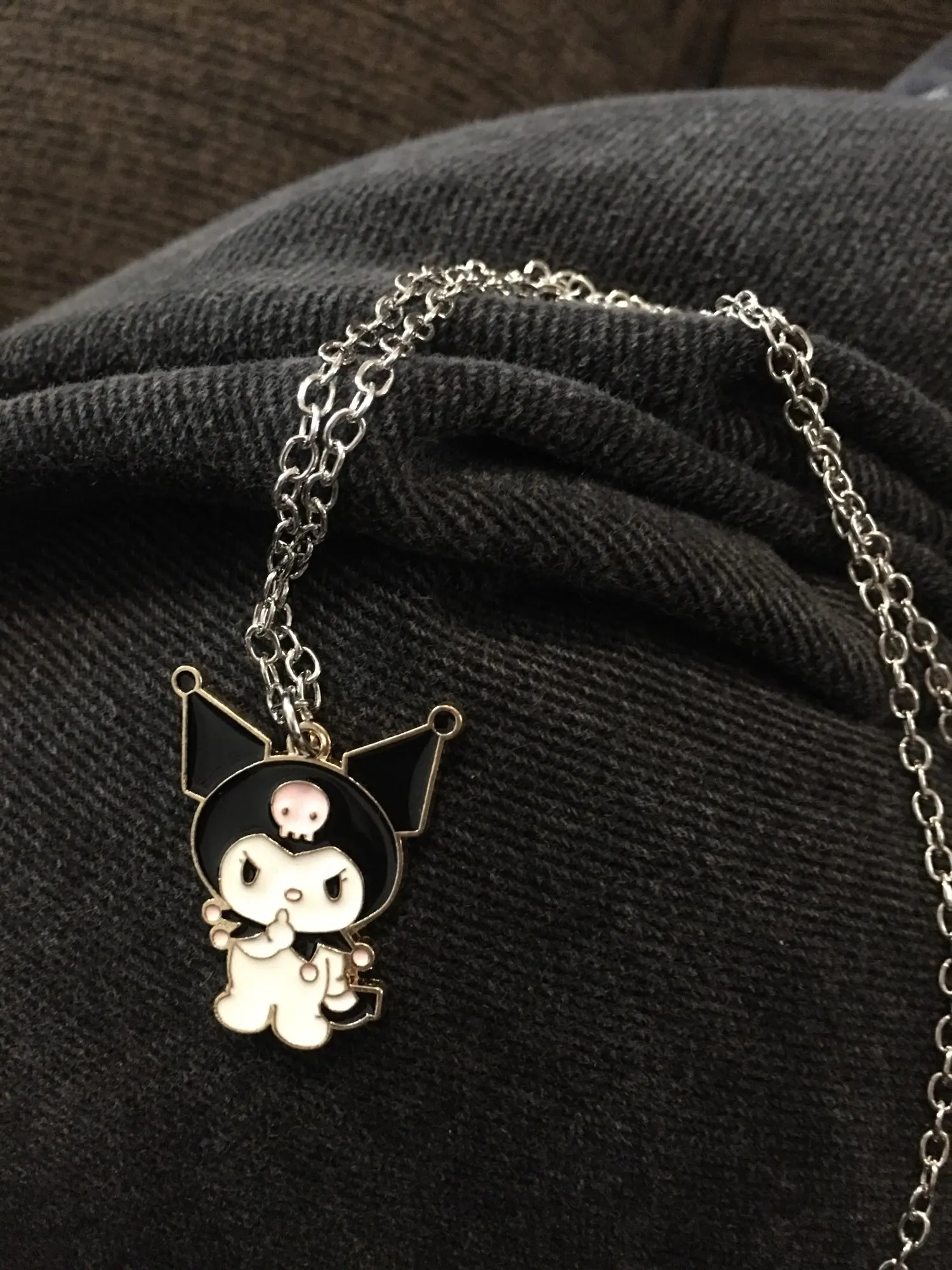 Kawaii Sanrio, плюшевое ожерелье с надписью «My Melody koomi Devil» из сплава, подвески с героями мультфильмов, ювелирные изделия, милые ювелирные изделия, подарок для девочки, Женская Игрушка на день рожденияПримечания:Из-за различных огней может быть Хроматическая аберрация.При ручном измерении возможна погрешность в 1-2 см.Если у вас есть какие-либо вопросы о продукте, вы можете связаться с нами.