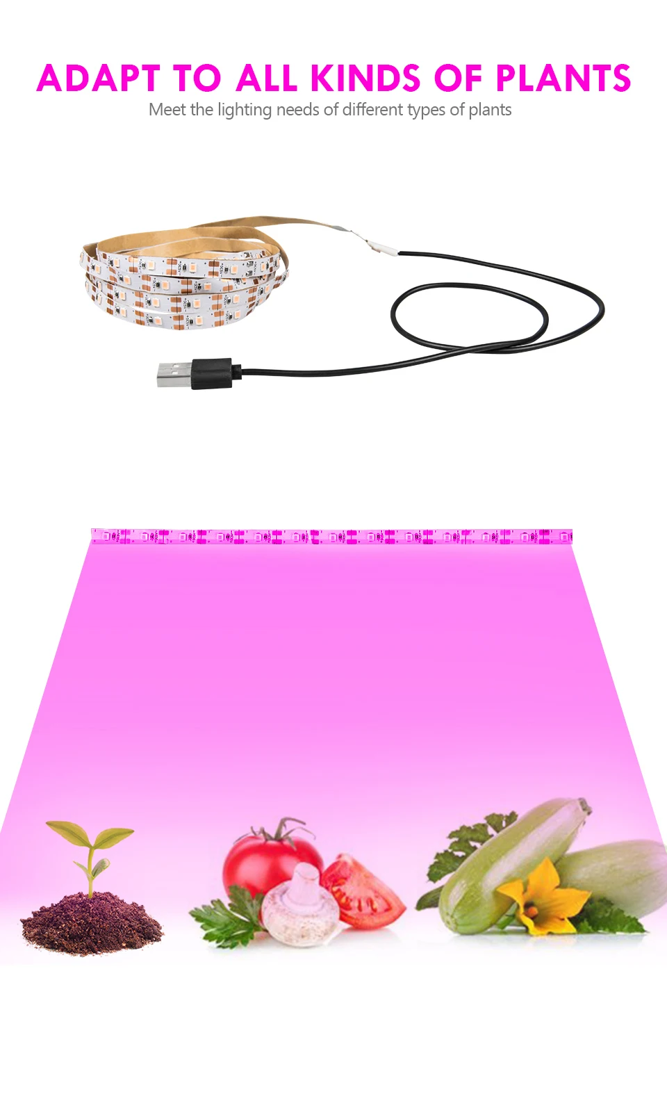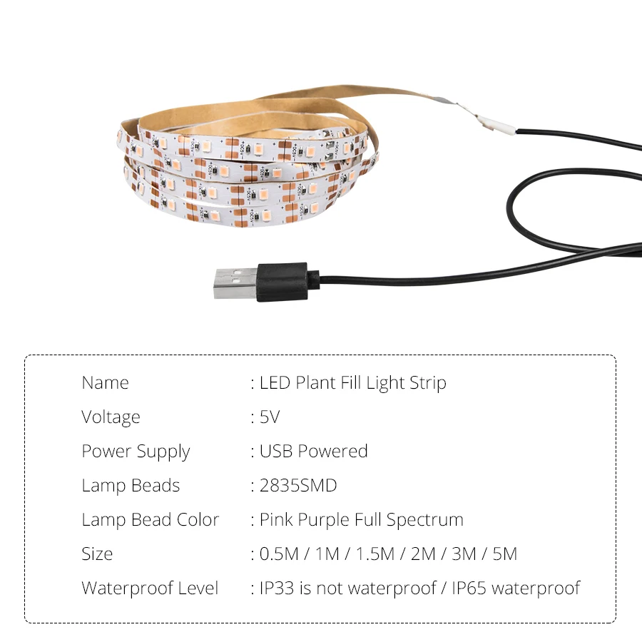 Тип: светодиодный светильник для растенийВодонепроницаемость: IP65/IP20Светодиодный Тип: SMD 2835Количество СВЕТОДИОДНЫЙ: 60 светодиодный/мНапряжение: 5 В постоянного токаДлина: 0,5 м, 1 м, 1,5 м, 2 м, 3 м