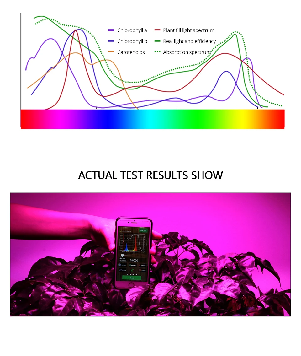 280 нм ~ 315 нм влияние на морфологические и физиологические процессы минимально315 нм ~ 420нм хлорофилл поглощает меньший эффект удара, предотвращает удлинение ствола420 нм ~ 500 нм (синий) хлорофилл и каротиноиды поглощают самую большую долю, самое большое влияние на фотосинтез500 нм ~ 620нм скорость поглощения красителя не высокая620нм ~ 750нм (красный) Скорость поглощения хлорофилла «Высокая», оказывает значительное влияние на фотосинтез и эффект фотохимидаСкорость поглощения 750нм ~ 1000нм, стимулирует удлинение клеток, воздействие цветения и прорастания семян> 1000нм преобразуется в калории