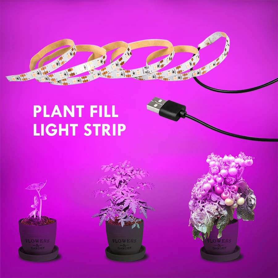 Фитолампа для растений полного спектра, USB светильник 5 В, 0,5-3 м, 2835 SMD, фитолента для семян, цветов, теплиц, гидропонных систем