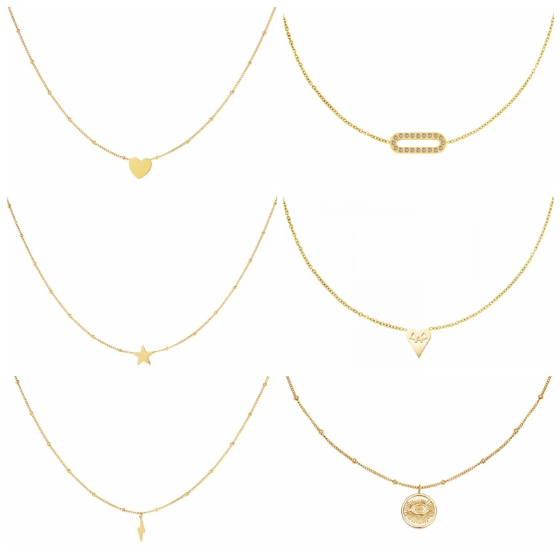 Простое любовное сердечко Star подвеска с молнией ожерелье для женщин посеребренные ожерелья многослойная цепочка украшения Collares