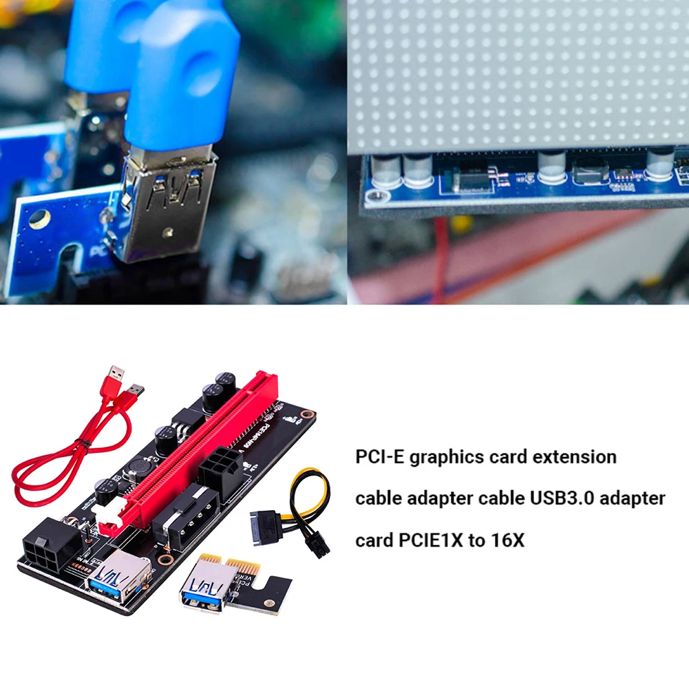 PCI-E карта расширения PCI Express PCIE 1X до 16X расширитель адаптер USB 3,0 кабель подъемная плата 4 твердых конденсатора для графического процессора майнинга