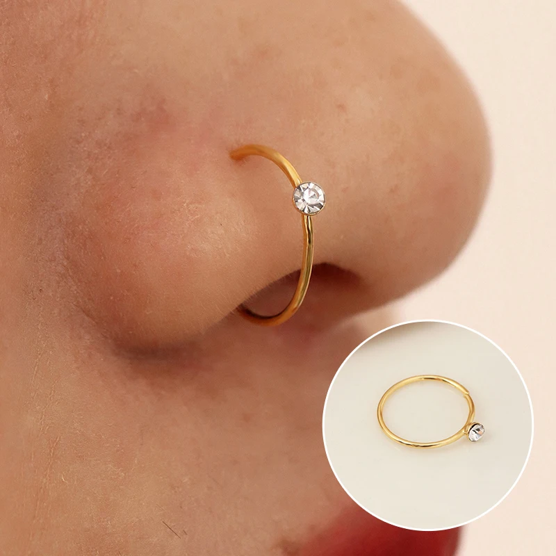 Медное кольцо для имитации пирсинга носа, 1 шт., клипса с кристаллом циркония на носу, клипса для ушей, Кафф, серьги-манжеты для женщин и девушек, подарочные украшения для тела