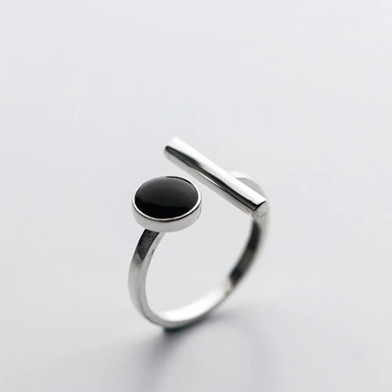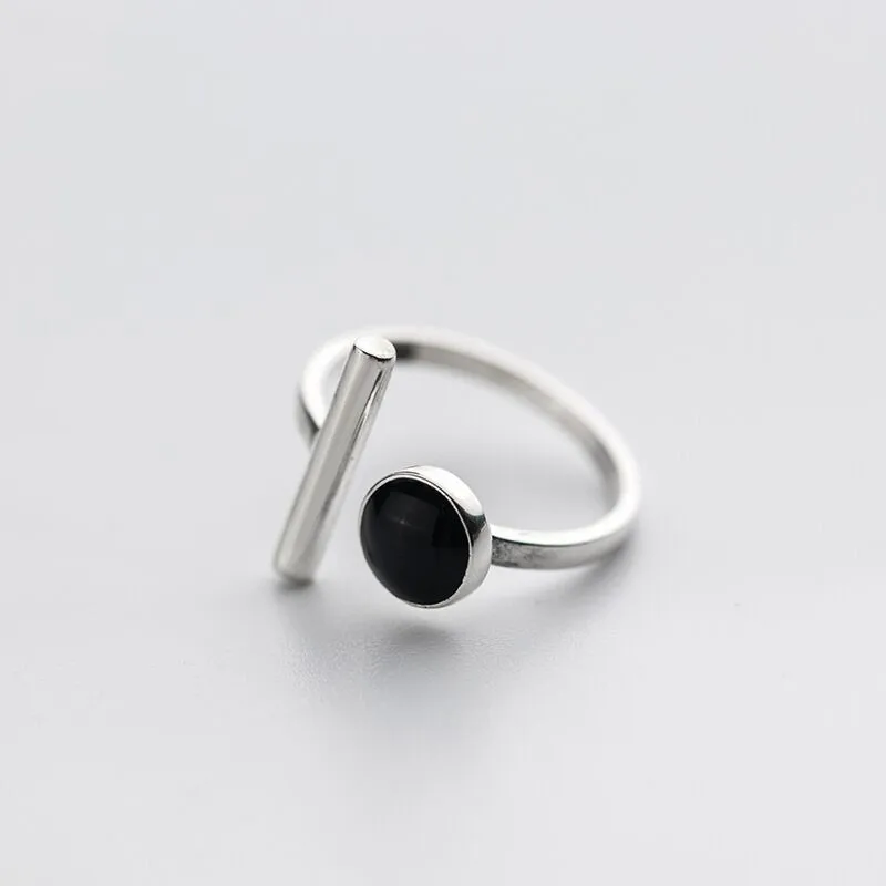 Женское кольцо в Корейском стиле, черное геометрическое открытое регулируемое кольцо стразы из стерлингового серебра 925 пробы, ручная работа, подарки для девушек