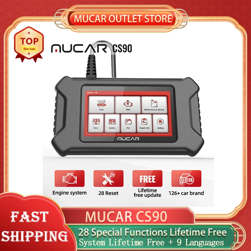 ZIMASALE1000Профессиональный сканер MUCAR CS90 OBD2 для автомобиля с BT200 полным считывателем кодов системы, 28 сбросами, пожизненным обслуживанием, бесплатным обновлением диагностики