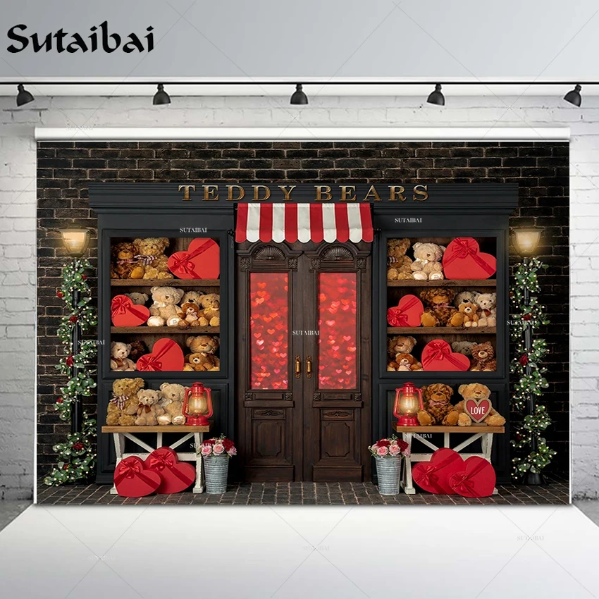 Фотография магазина на День святого Валентина, фотография, дневной фотография, фотография, медведь, Роза, цветы, дисплей, окно для новорожденных, Детская фотостудия, реквизит