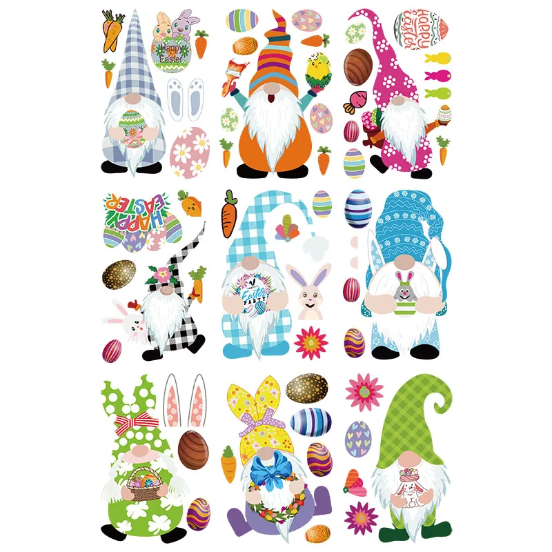 9 листов Счастливой Пасхи съемные наклейки для окон двойная сторона...
