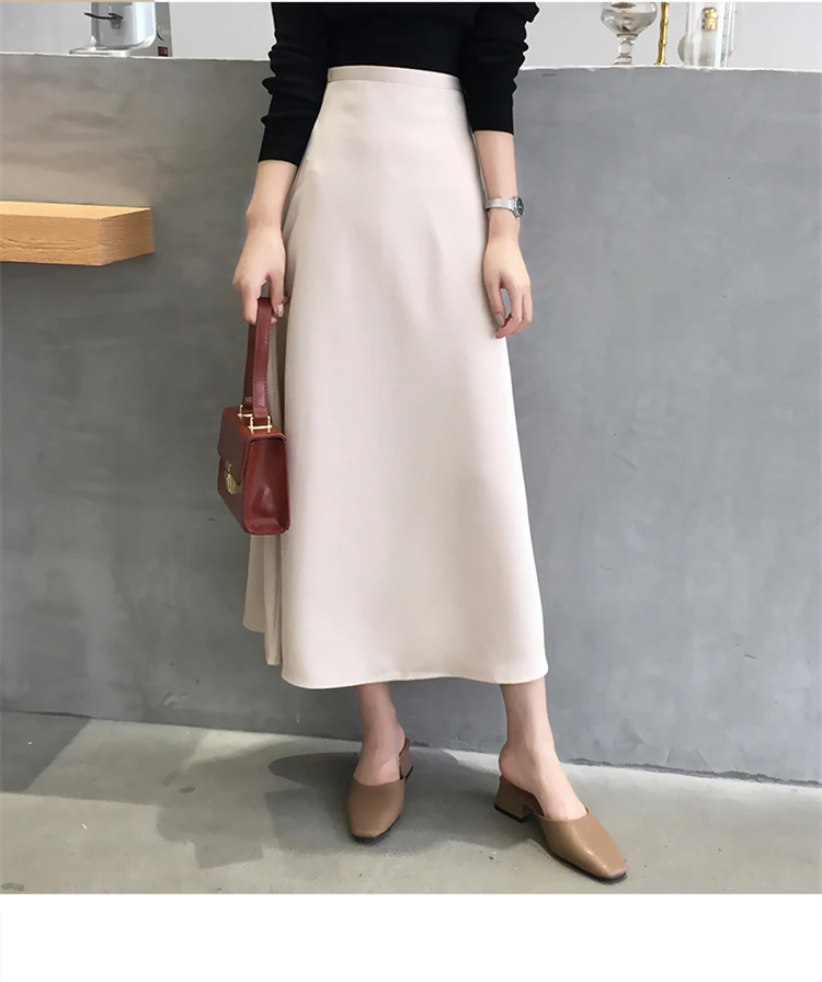 Женская элегантная офисная Глянцевая атласная юбка, однотонная блестящая модная женская юбка с высокой талией