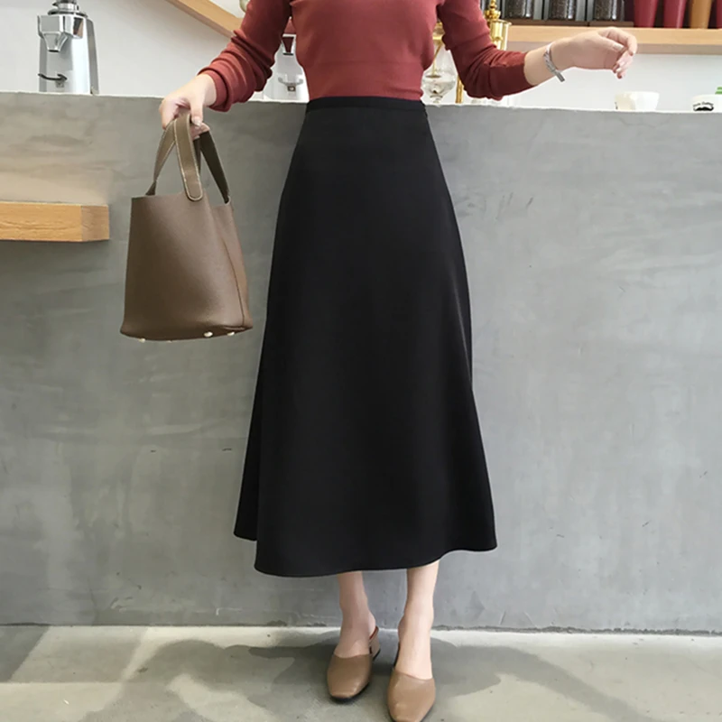 Юбка Женская средней длины для офиса, простая однотонная атласная э...