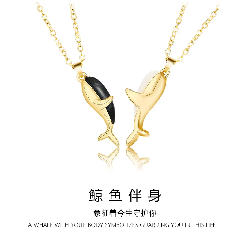 Модное магнитное двойное ожерелье с подвеской для пары, женское колье-чокер с дельфином и Китом, цепочка, подарки на день Святого Валентина, ювелирные изделия для девушки