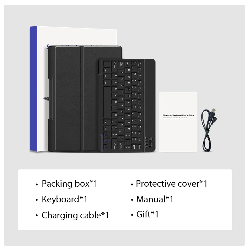 1 * Беспроводная клавиатура + руководство + USB кабель (версия на английском языке)