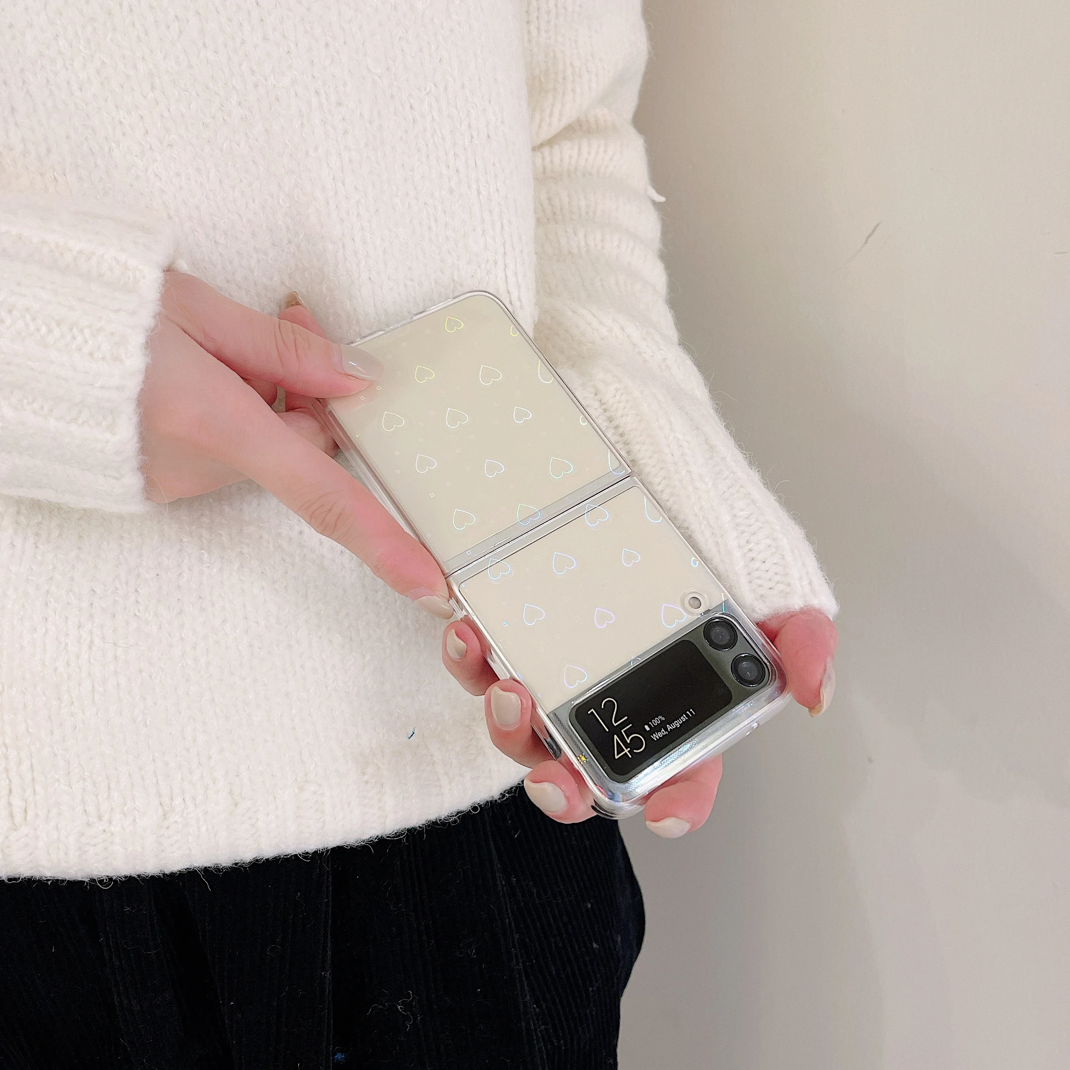 Чехол для телефона USLION INS с любовным сердцем для Samsung Galaxy Z Flip 3 5G, противоударный прозрачный чехол с лазерной Авророй для Samsung Z Flip 3
