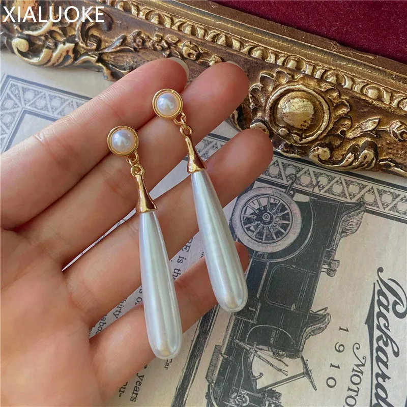 Женские Геометрические висячие серьги XIALUOKE, серьги с жемчугом в стиле барокко