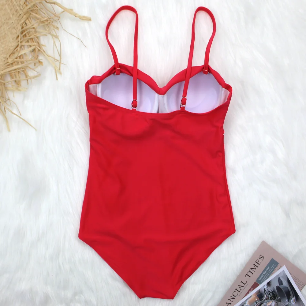Красный бандажный купальник с лямкой на шее, женский слитный купаль...
