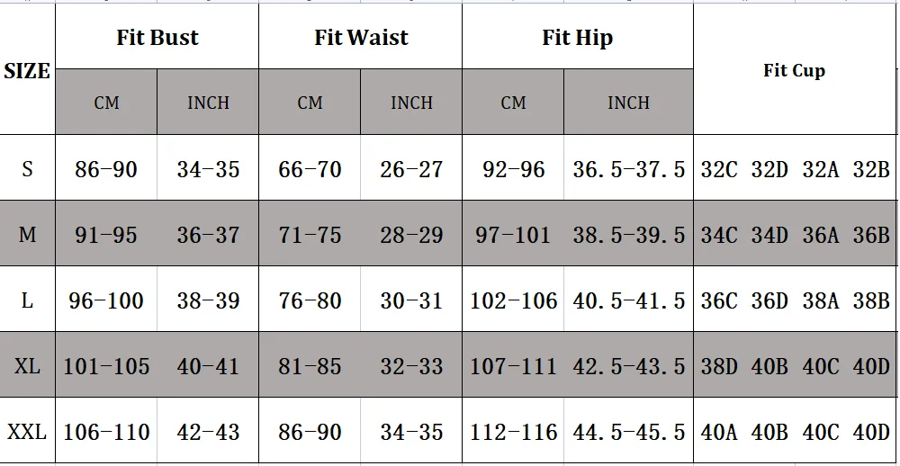 1. Таблица размеров-это размер тела, а не размер одежды.2. Пожалуйста, сравните следующие размеры с вашими данными перед покупкой.3. Возможны отклонения на 1-2 см вследствие измерений вручную. Спасибо за понимание.4. Если вы не уверены в размере, вы можете оставить сообщение о вашем обхвате груди, талии, бедер.5. Поддержка прямой доставки, пожалуйста, свяжитесь с нами.
