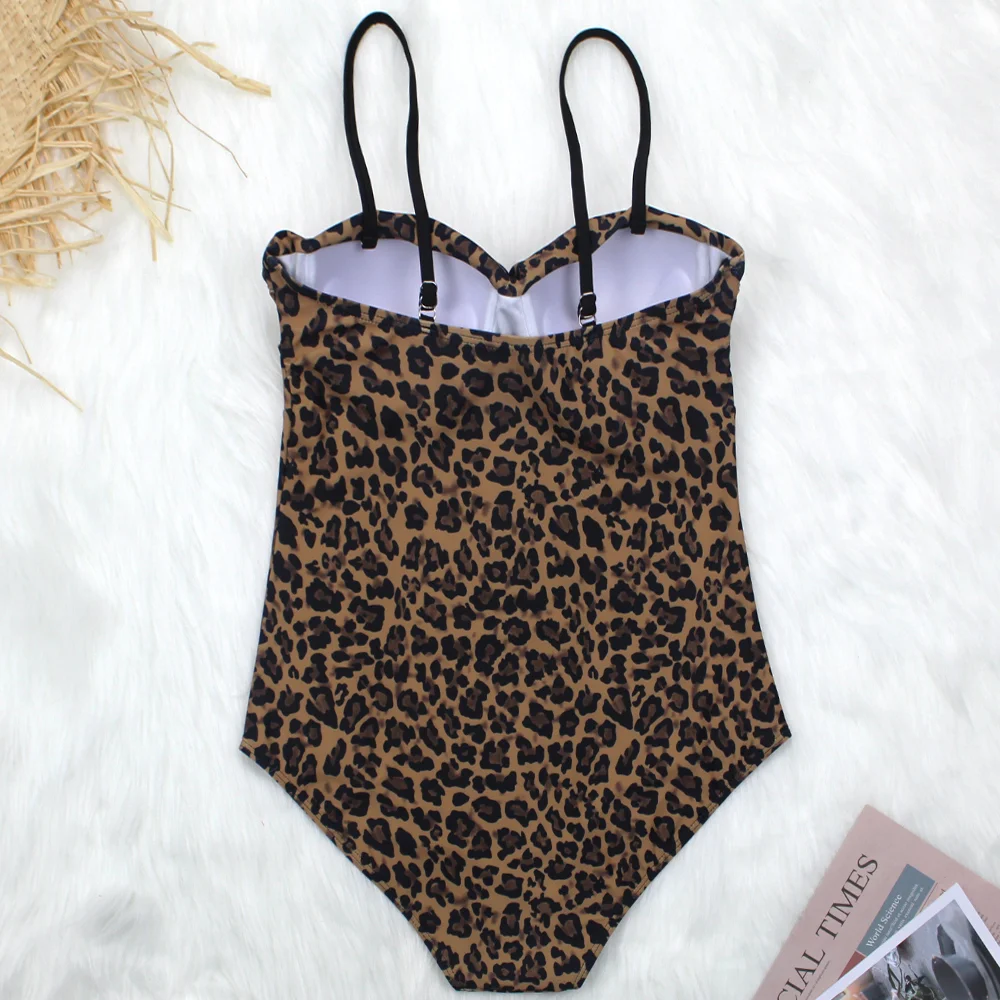 Леопардовый слитный женский купальник, монокини с пуш-ап, винтажный купальник, европейские классические купальные костюмы 2022, пляжная одежда, Женское боди