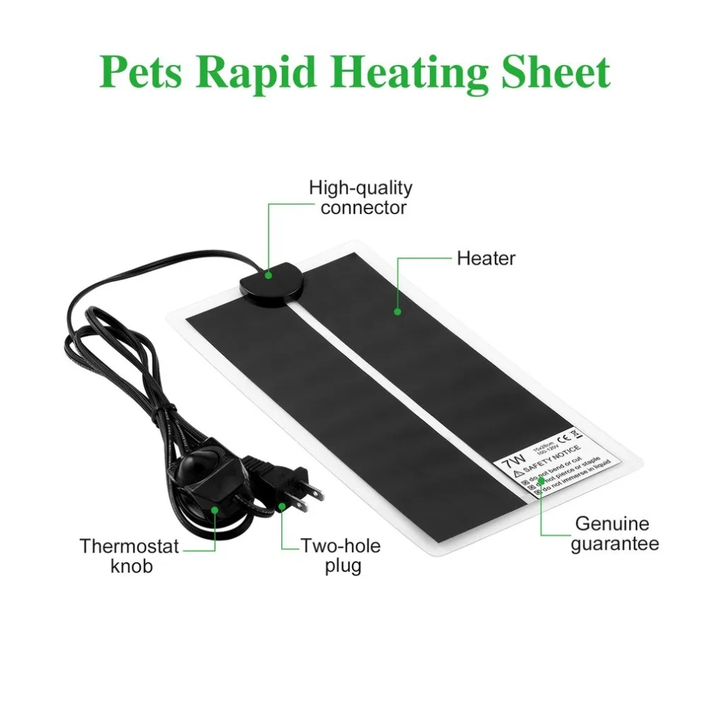 Особенности:Термоматы распределяют тепло равномерно на поверхности подложки.Низкое энергопотребление с длительным использованием.Водонепроницаемый дизайн, который можно использовать под водой, но не кладите его в течение длительного времени.Профессионализм в использовании и простота в эксплуатации.Создает комфортные условия для домашних животных.