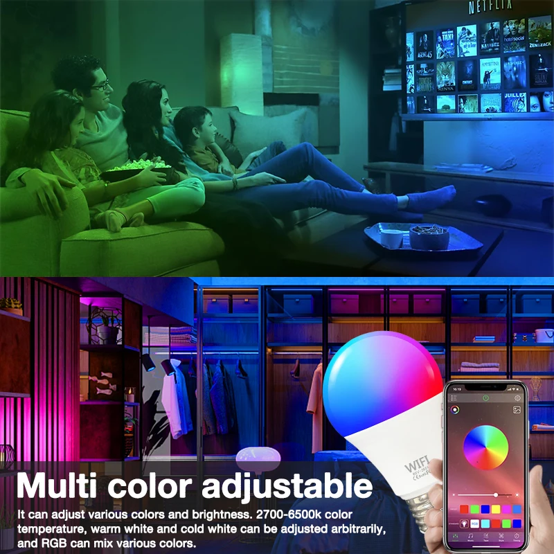 Умная лампа с Wi-Fi, 15 Вт, E27, RGBCW