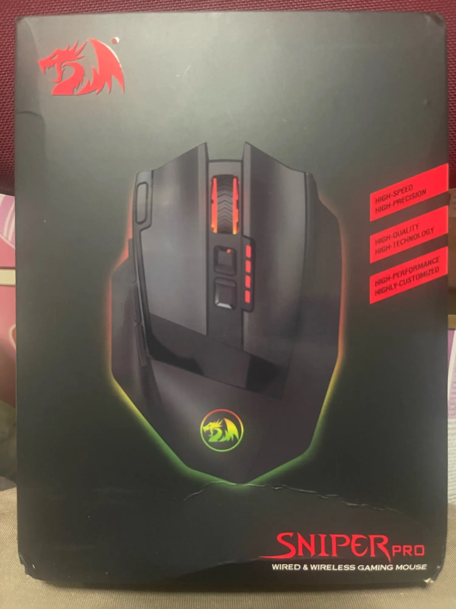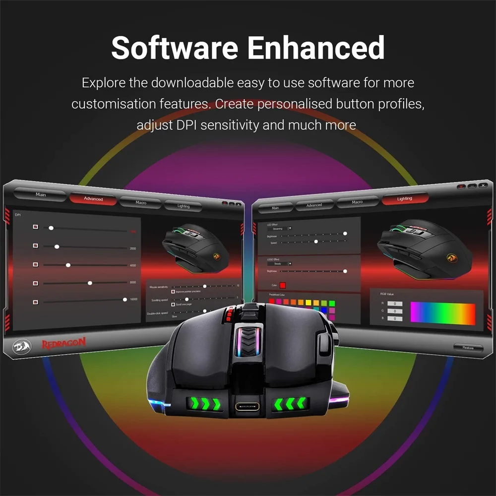 Беспроводная игровая мышь Redragon Sniper Pro M801P, USB 2,4G, светодиодная RGB подсветка, MMO, 9 программируемых кнопок, мышь 16400DPI для любителей компьютерных игр