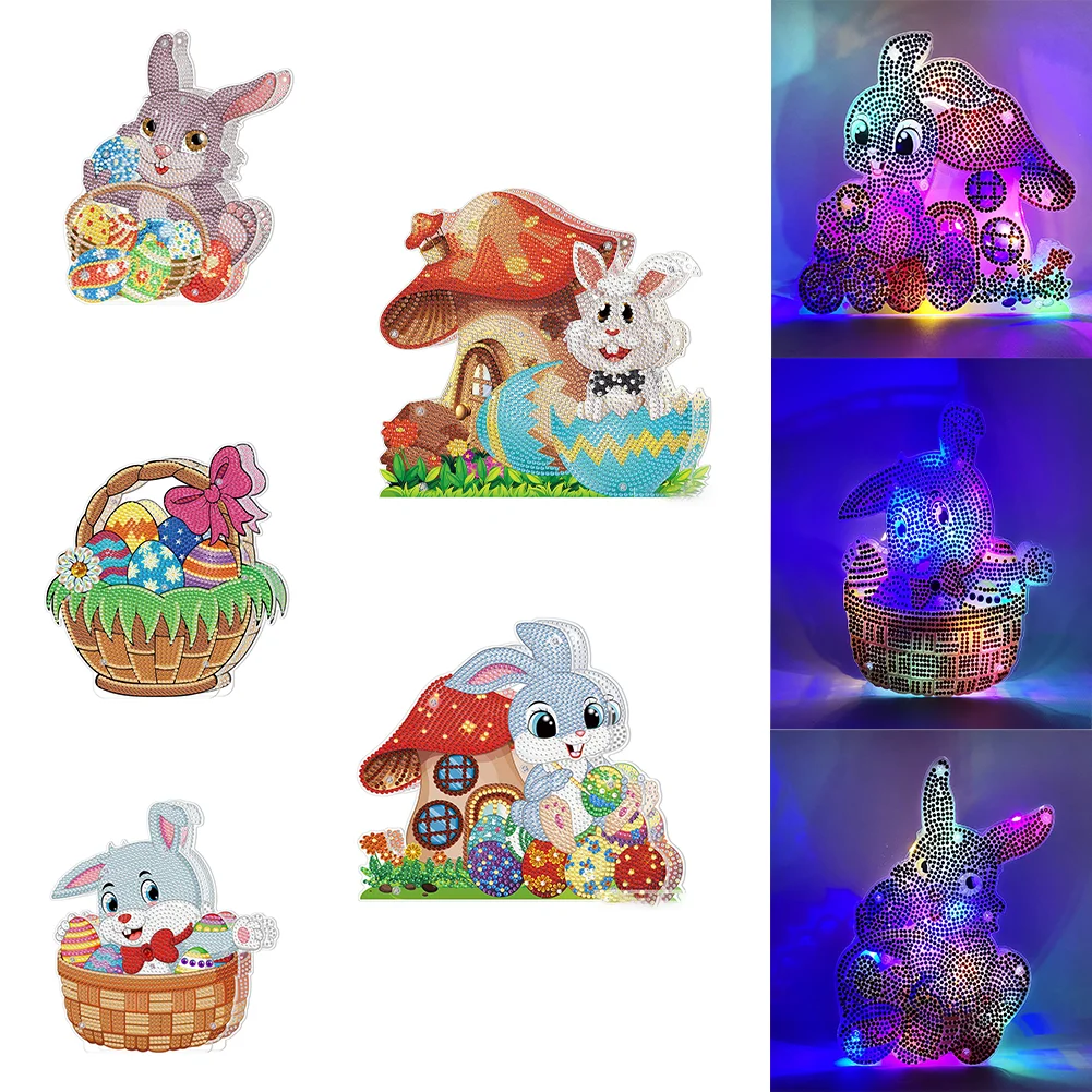 Набор для алмазной вышивки сделай сам, пасхальное украшение с милыми мультяшными животными, светодиодный светильник, ночник, Декор для дома и рабочего стола, подарки
