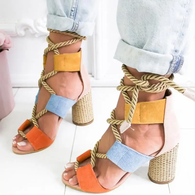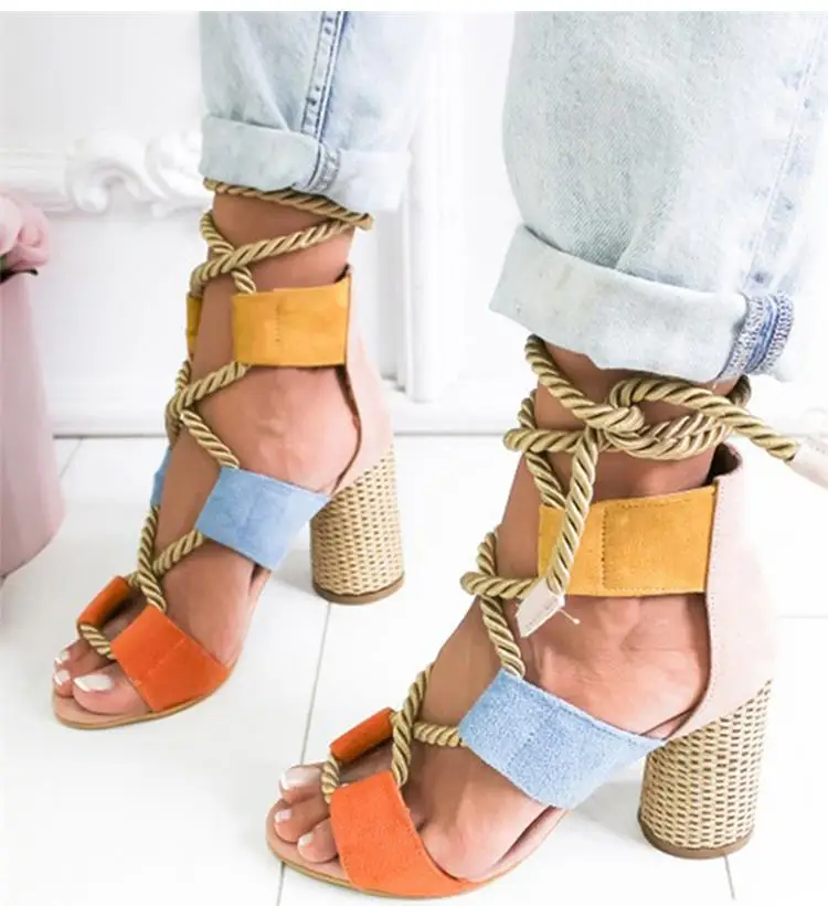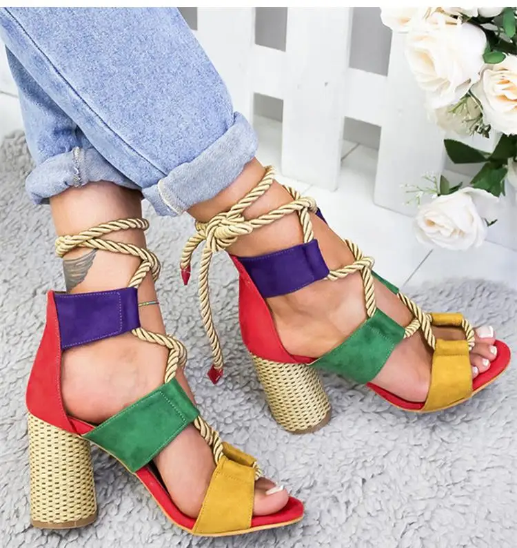 Женские сандалии толстые нижние сандалии женские модные яркие туфли...