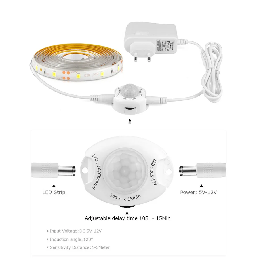 Широко используется для светодиодных лент от 5 в до 12 В, модулей и т. д., используется в качестве датчика движения Ночные огни, под постельным освещением, освещение для шкафа и т. Д.