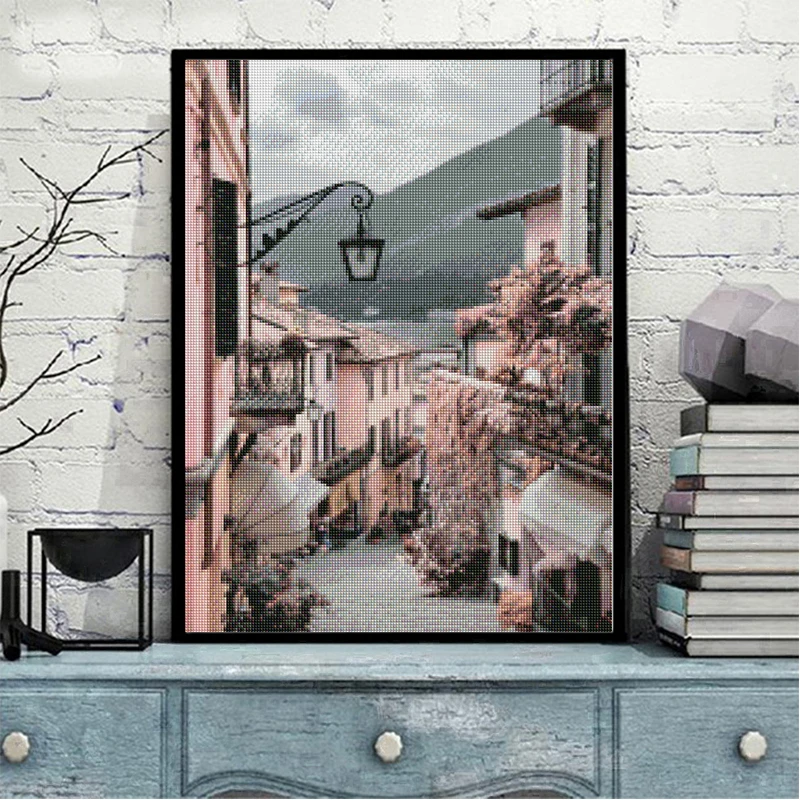 Алмазная живопись, уличная вышивка крестиком, розовая 5D Вышивка сделай сам, пейзаж, город, вышивка крестиком, искусственная стена, домашний декор