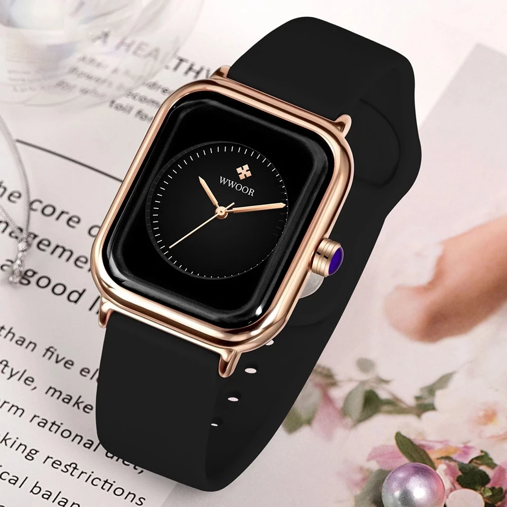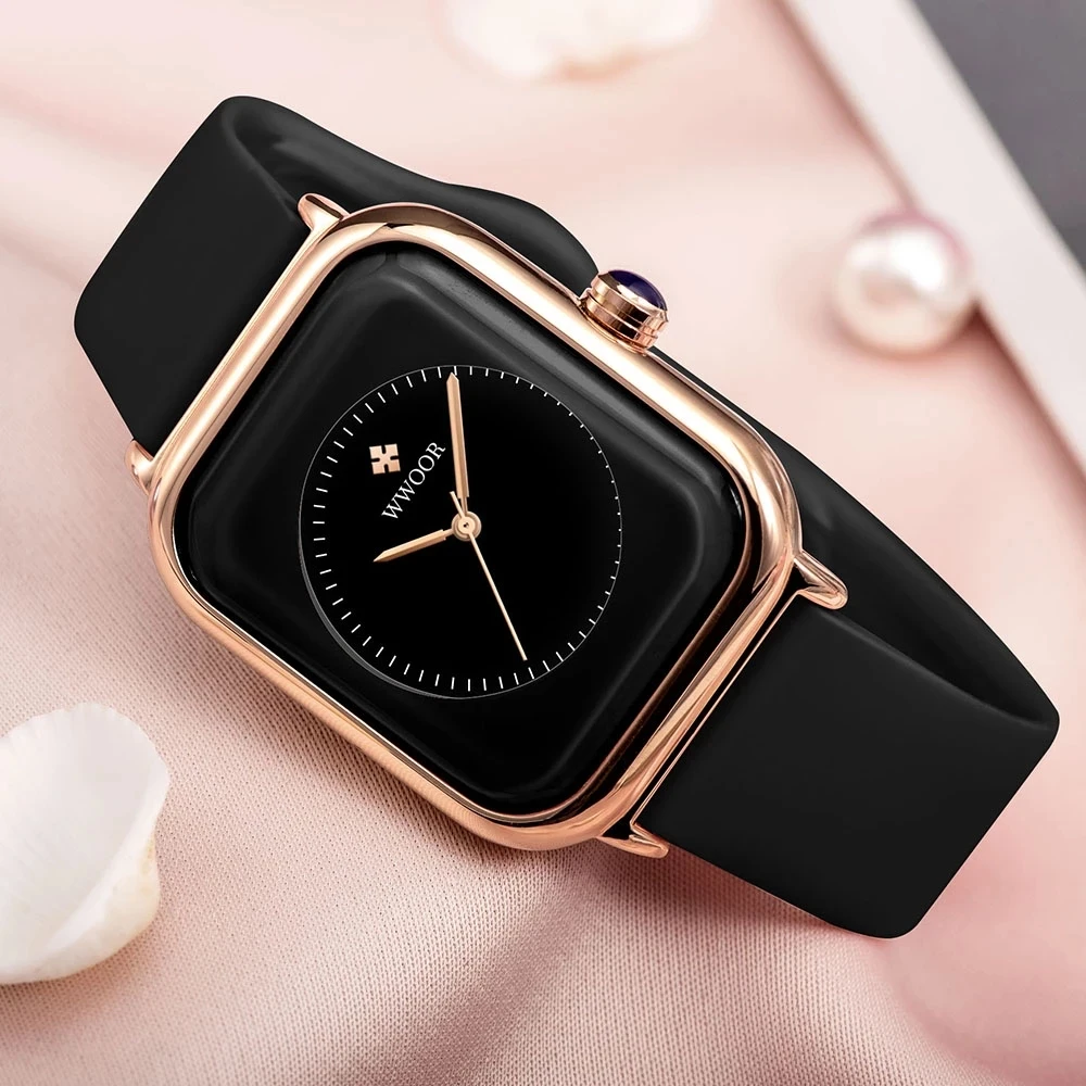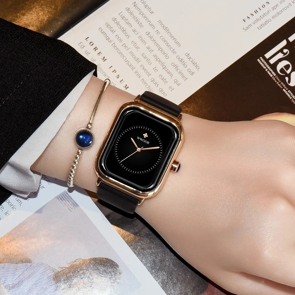 Montre Femme WWOOR 2021 роскошные новые модные часы женские Кварцевые черные повседневные Элегантные силиконовые женские часы женские наручные часы