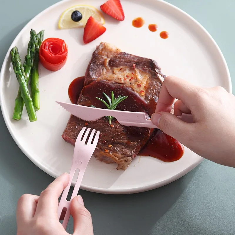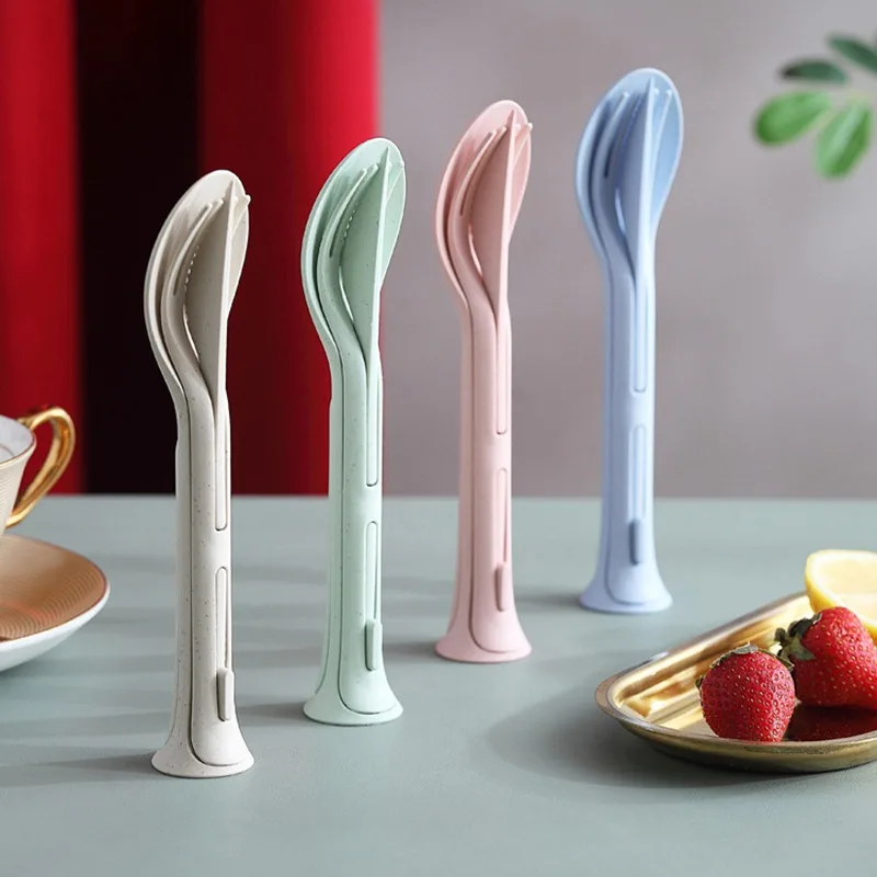 Дорожный портативный набор столовых приборов 3 шт.компл. 3 в 1, в японском стиле, нож из пшеничной соломы, вилка, ложка, студенческие столовые принадлежности, кухонная посуда